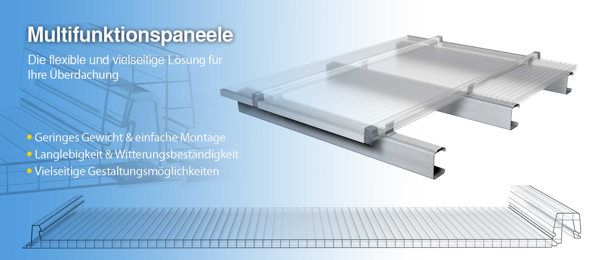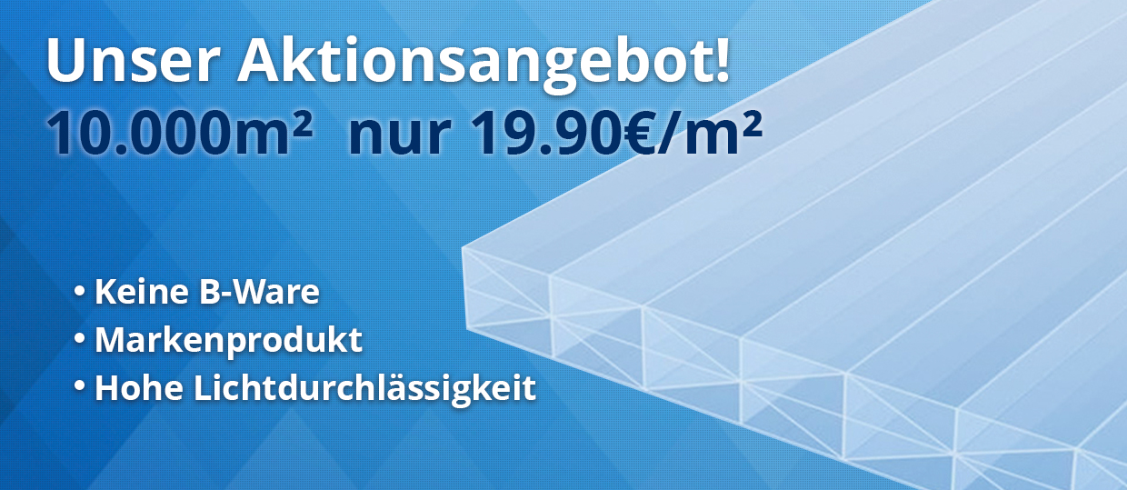 Wir konnten hier eine große Menge Stegplatten aus Polycarbonat aus einer Überproduktion sehr günstig einkaufen. Diesen Preisvorteil möchten wir gerne an Sie als Kunden weitergeben.