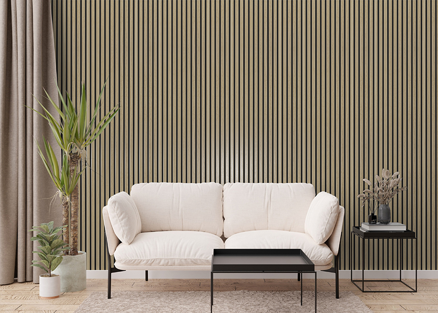 Akustikpaneel - Wandpaneele Full Color | Natural Oak | Braun | schwarzer Filz | 600 x 2600 x 17mm