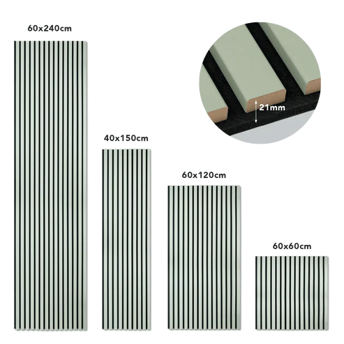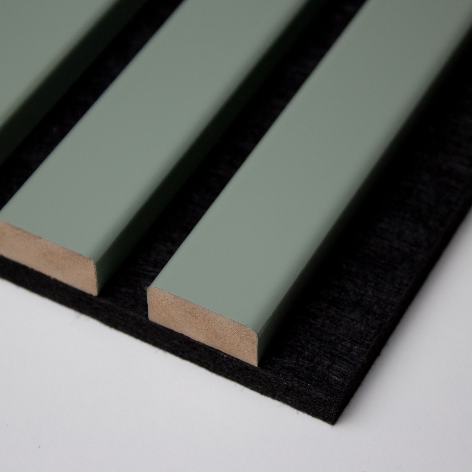 Produktinformationen "Akustikpaneele - Lamellendekor Pastellgrün mit schwarzem Filz"