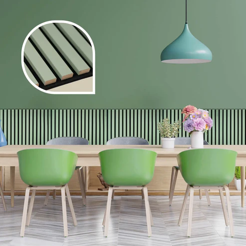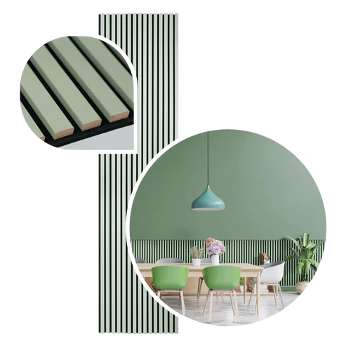 Akustikpaneele - Lamellendekor Pastellgrün mit schwarzem Filz