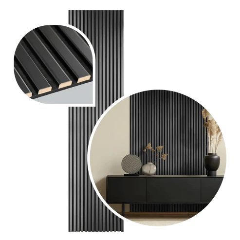 Akustikpaneele - Lamellendekor Schwarz mit schwarzem Filz