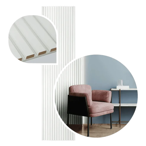 Akustikpaneele - Lamellendekor Weiß mit weißem Filz