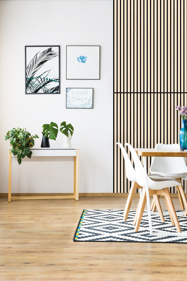 Im Vergleich zum klassischen Format 600 × 2400 mm bietet dieses Maß einen weiteren Vorteil: Dank des im Lieferumfang enthaltenen Connectors – ein Connector pro Akustikpaneel – lassen sich nahtlose Übergänge realisieren, sodass ein harmonisches und durchgängiges Gesamtbild entsteht. Damit eignen sich die Akustikpaneele ideal für individuelle Designkonzepte im privaten wie auch im gewerblichen Innenbereich.