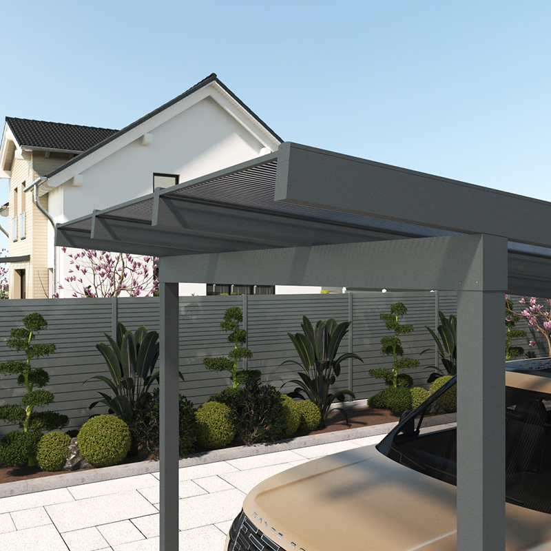 Aluminium Flachdach Carport- Aufstellung der hochwertigen Einzelkomponenten.