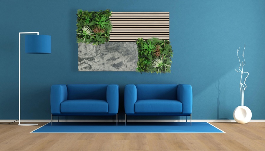 Wohnzimmer: Natürlicher Akzent hinter Sofa oder Fernseher