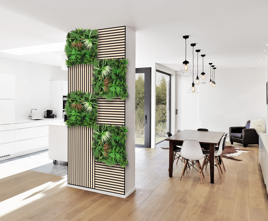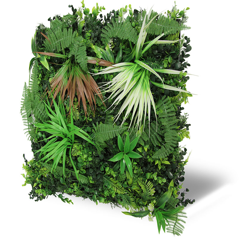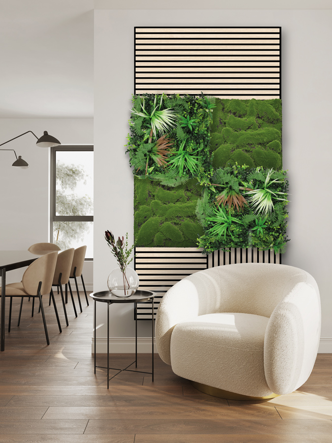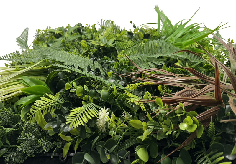 Die Flora-Paneele überzeugen durch ihre naturnahen Pflanzenstrukturen und lebendige Texturen. Als hochwertige Kunstpflanzen-Installation benötigen sie keinerlei Pflege: kein Gießen, Düngen oder spezielle Beleuchtung. So bleibt die intensive, natürliche Wirkung dauerhaft erhalten – völlig unkompliziert.