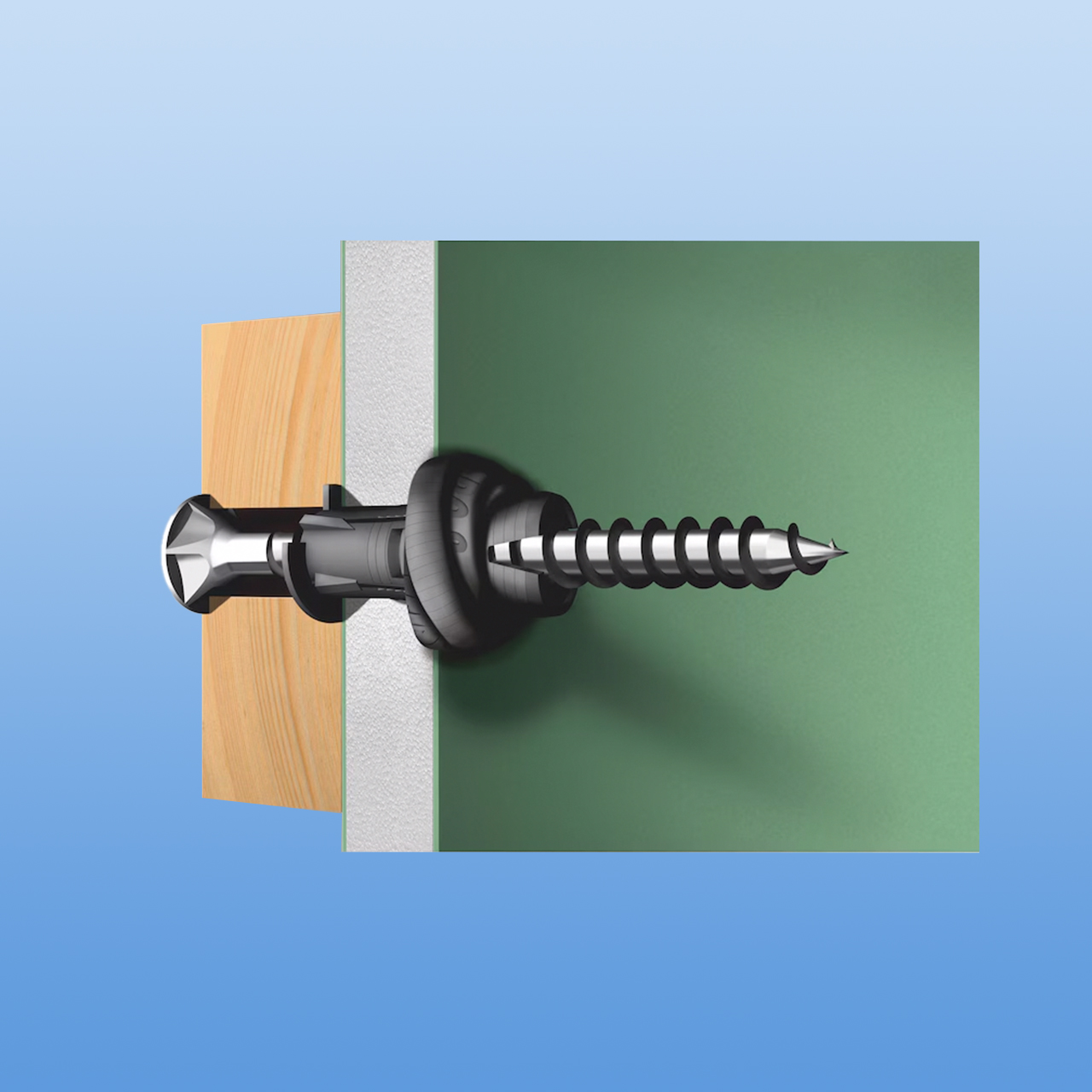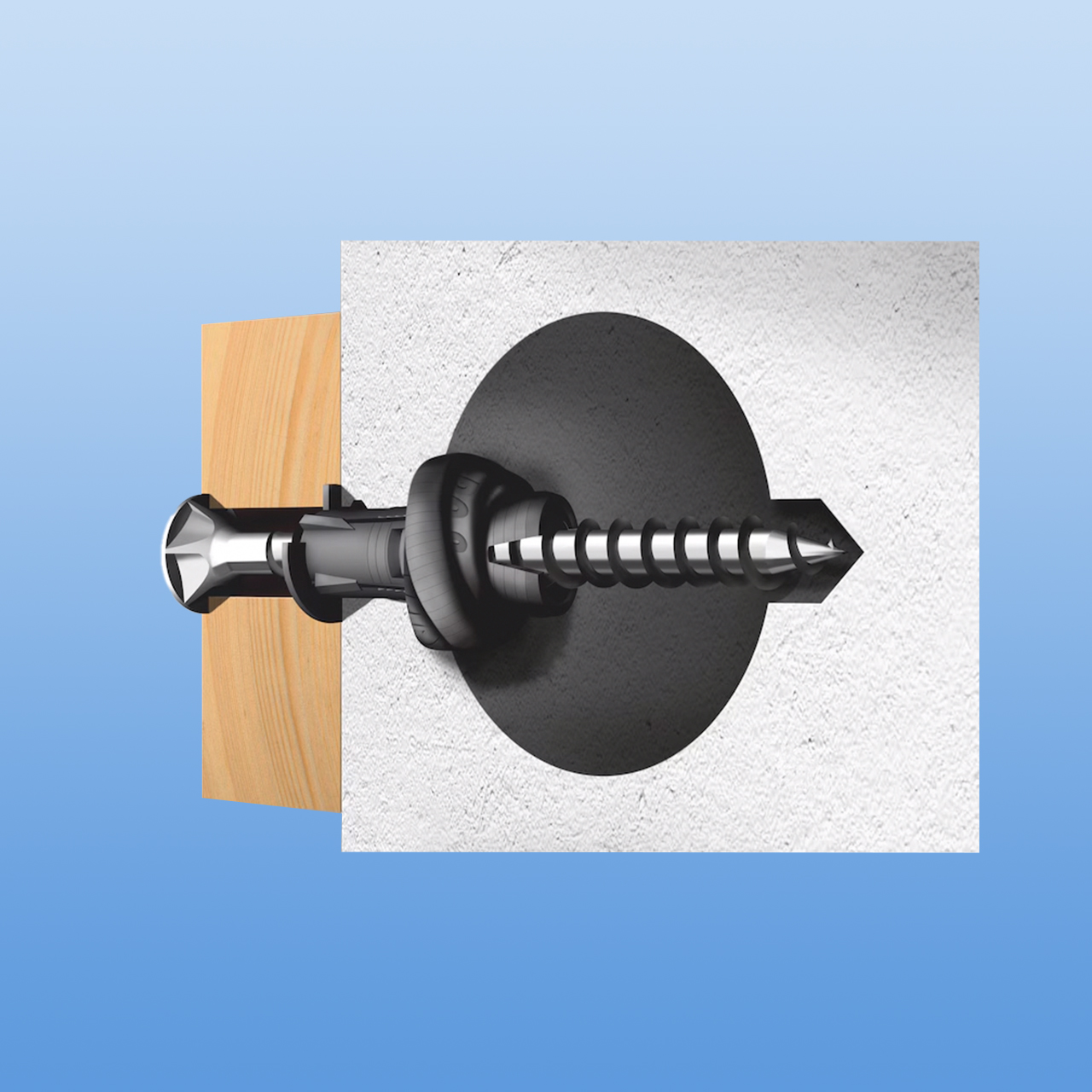 Das moderne Anthrazit des Dübels harmoniert ideal mit Betonoberflächen, Putz und Anbauteilen in Metallfarben, sodass er selbst bei sichtbarer Montage dezent bleibt.