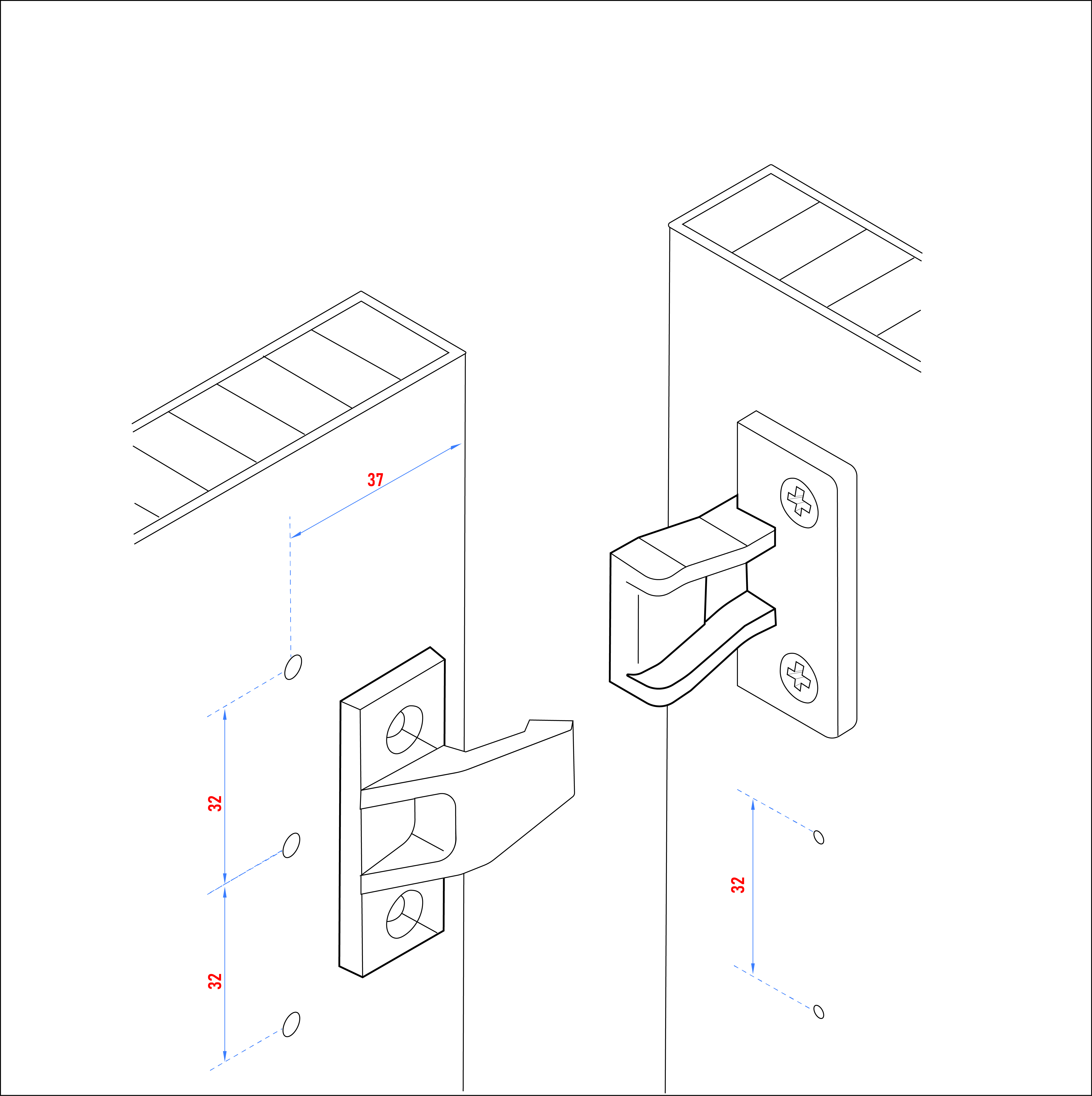 Bohrlochabstand: 32 mm