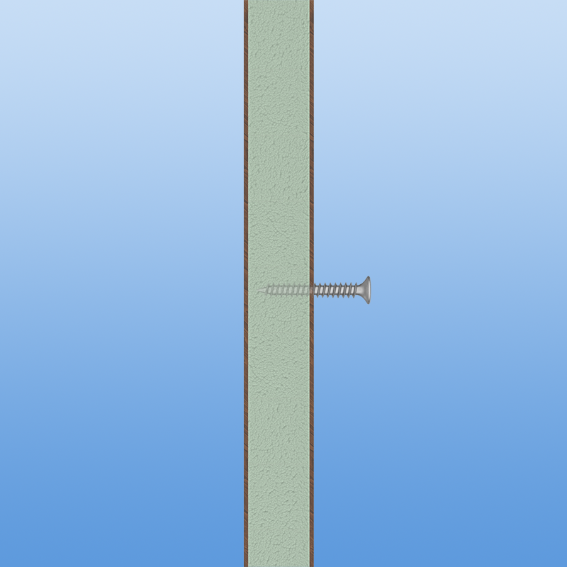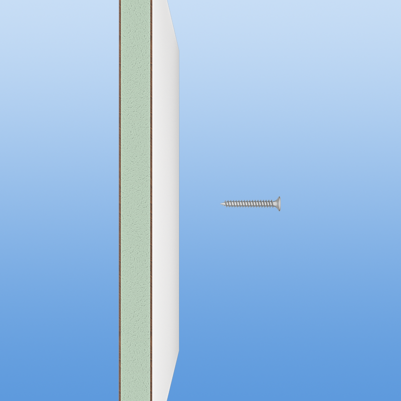 Sandwichplatten mit geschäumtem TK-Kern - Schraubfestigkeit und Robustheit vereint. Sandwichplatten mit geschäumtem TK-Kern sind eine innovative Lösung und finden ihren Einsatz im Bau von Gebäuden, Fassaden oder auch für den Einsatz in der Möbelindustrie sowie im Messebau. Diese Platten zeichnen sich durch ihre hohe Schraubenauszugsfestigkeit aus, die bei etwa 38 kg liegt. Dadurch ist es möglich, dass in den Kern der Platte geschraubt werden kann, ohne dass die Platte an Stabilität verliert. Der TK-Kern ist ein technischer Kunststoff, der sich durch seine geringe Dichte und seine hervorragenden Isolationseigenschaften auszeichnet. Der geschäumte Kern sorgt dafür, dass die Platte leichter als herkömmliche, massive Platten ist und somit einfacher zu transportieren und zu verarbeiten. Gleichzeitig bietet der geschäumte TK-Kern eine hervorragende Wärmedämmung, die dazu beiträgt, die Energiekosten zu senken. Die beidseitigen Deckschichten aus 2mm HPL-Platten bieten eine robuste Oberfläche, die widerstandsfähig gegen Kratzer, Feuchtigkeit und UV-Strahlung ist. Dadurch sind diese Platten auch für den Einsatz im Außenbereich geeignet und können selbst extremen Witterungsbedingungen standhalten. Insgesamt bieten Sandwichplatten mit geschäumtem TK-Kern eine hervorragende Kombination aus Schraubfestigkeit und Robustheit, die sie zu einer idealen Wahl für viele Anwendungen machen.