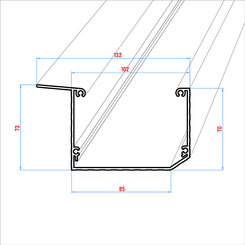 Kastenrinne aus Aluminium in blank - unbeschichtet