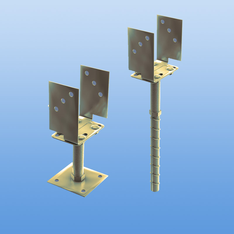Pfostenträger erhalten Sie optional zum Einbetonieren, Aufschrauben, starr oder in Höhe und Weite verstellbar.