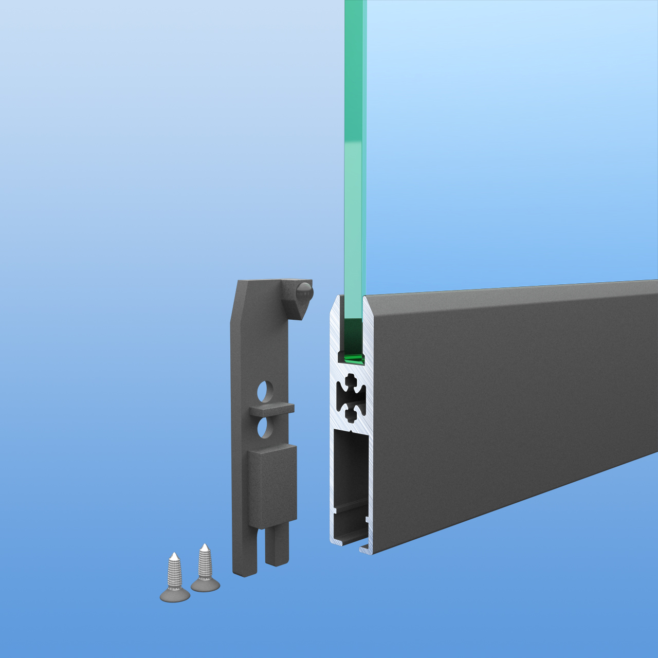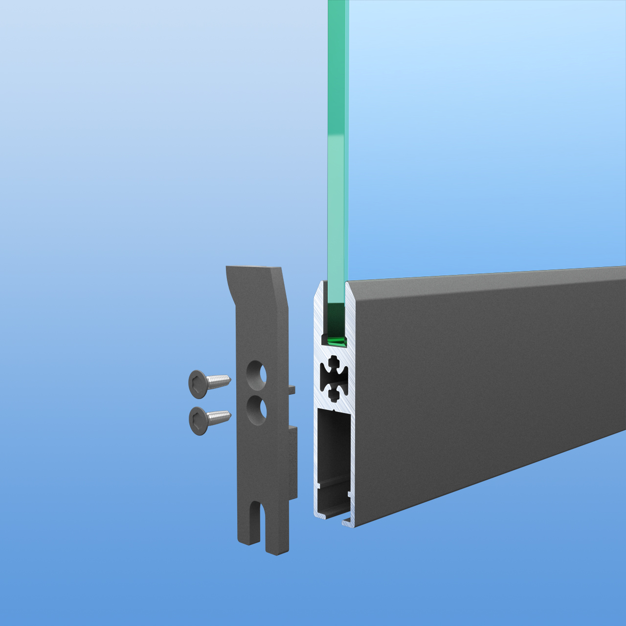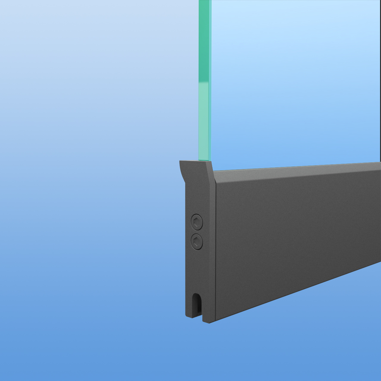 Das Mitnehmer-Set "Premium" besteht immer aus zwei Mitnehmern und vier Befestigungsschrauben. Die normalen Endkappen der Laufwagenprofile werden durch die Mitnehmer ersetzt. Die Mitnehmer der Glasschiebewände sind passend in Anthrazit (DB703) pulverbeschichtet, so dass sich diese harmonisch in das Gesamtbild der Glasschiebewand einfügen. Die Mitnehmer "Premium" überzeugen nicht nur durch das bis zu 12mm starke Material, sondern haben auch noch Dämpferplättchen aufgeklebt, damit die Scheiben sanft aufeinander treffen.
