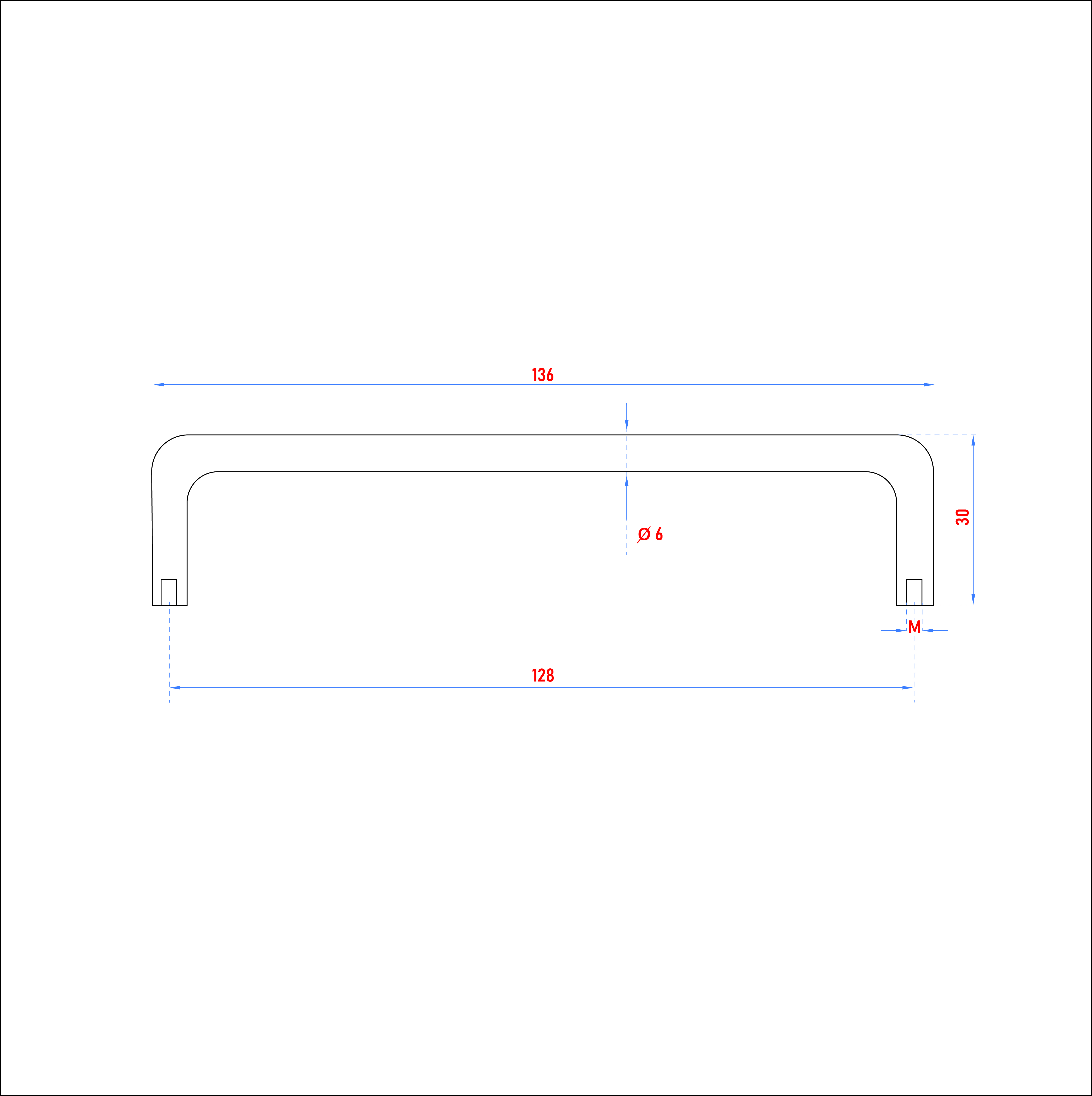 Möbelgriff - Bügelgriff 128 x 30 x 8 - verchromt Matt
