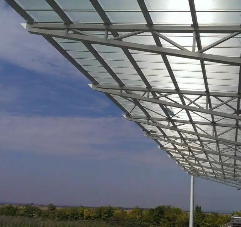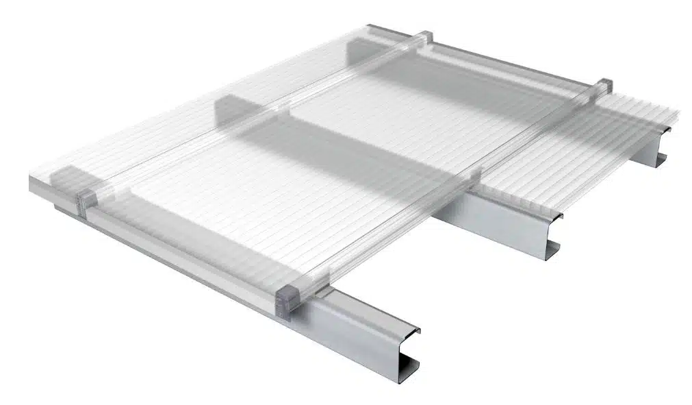 Dank der innovativen Konstruktion mit Kupplungen an den Längsseiten befindet sich die Verbindung außerhalb der wasserführenden Schicht. Dadurch ist das Paneel optimal für Dachneigungen ab 5° geeignet, ohne Kompromisse bei der Dichtheit einzugehen. Diese Eigenschaft macht es zu einer hervorragenden Wahl für lichtdurchflutete Dachkonstruktionen, beispielsweise in Carports, Terrassenüberdachungen oder Wintergärten.