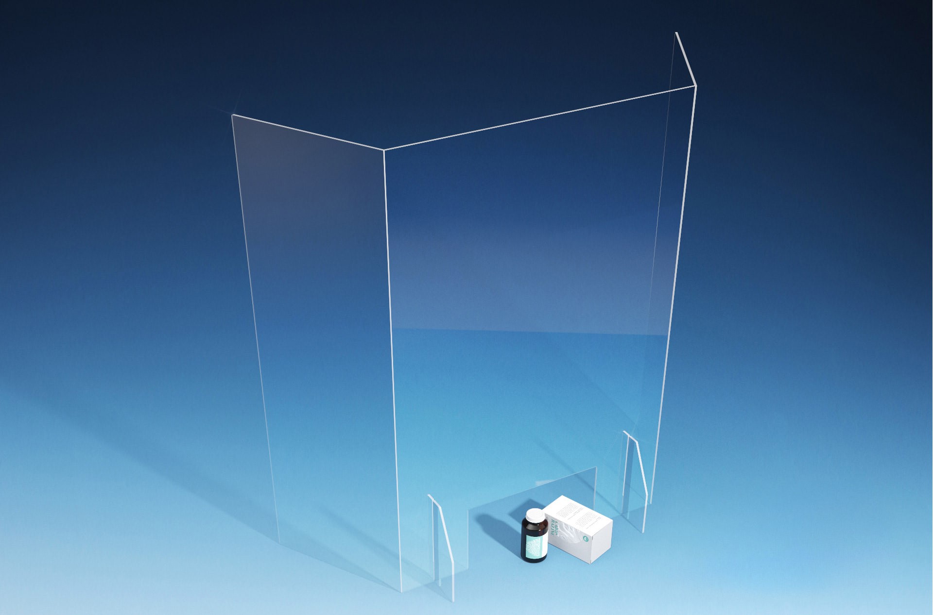 Spuckschild, Niesschutz "dreiseitig" für Apotheken, Ärzte, Bäckereien und Einzelhandel