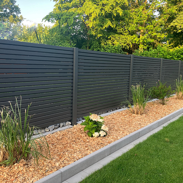 Im Rahmen dieses Projekts wurde eine optische Abgrenzung zum Nachbargrundstück realisiert. Als Gestaltungselement kamen Rhombusleisten in der modernen Farbe Anthrazit (DB703) zum Einsatz, die für ein stilvolles und zeitgemäßes Erscheinungsbild sorgen.