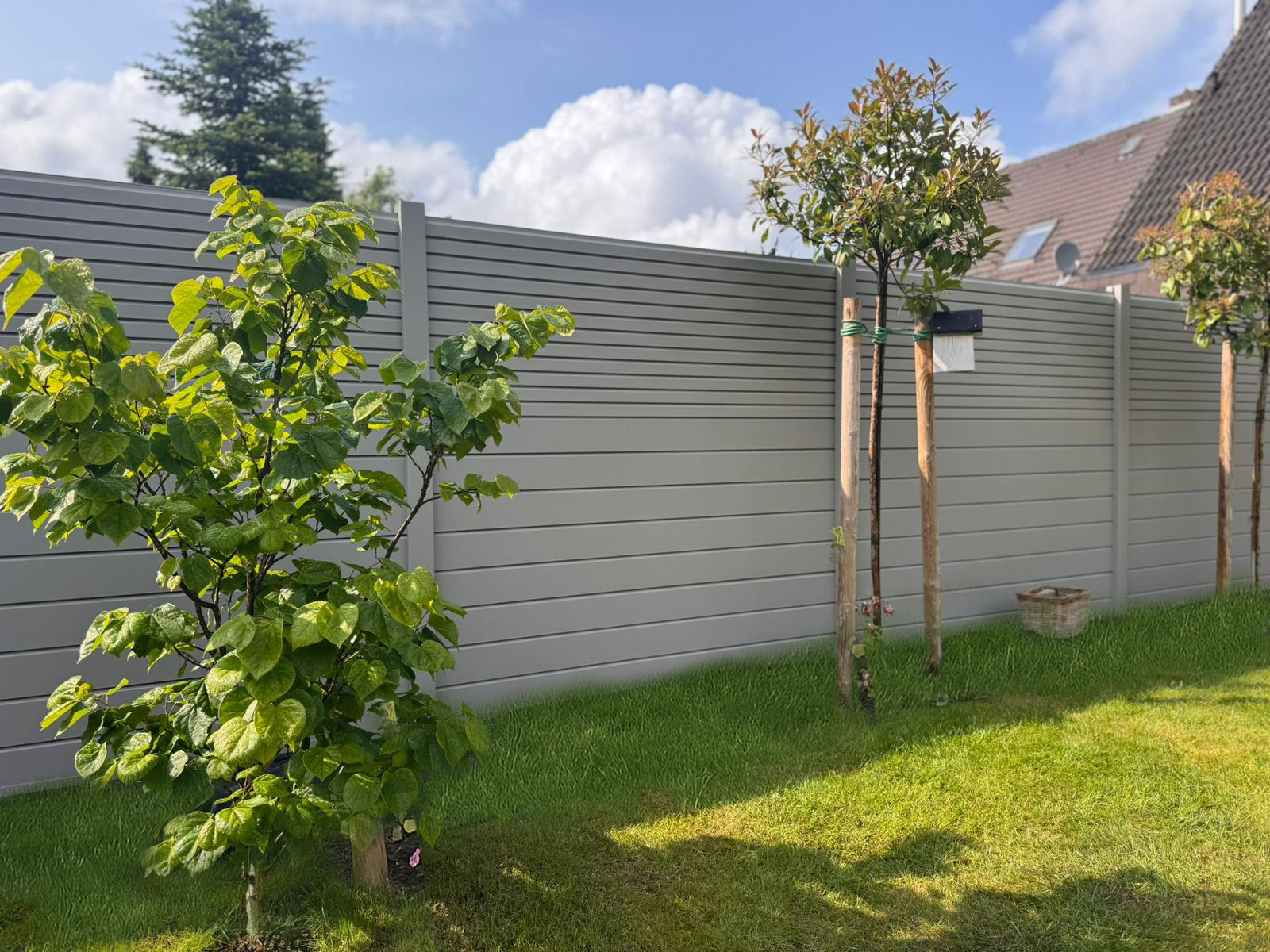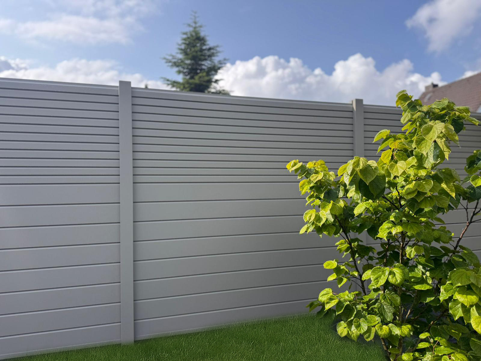 Im Rahmen dieses Projekts wurde ein moderner, blickdichter Zaun in geschlossener Ausführung mit Rhombusleisten mit Montagesteg realisiert. Für die Füllung der Zaunfelder kam eine Kombination aus breiten und schmalen Rhombusprofilen zum Einsatz. Durch die Anordnung entsteht ein harmonisches und zugleich lebendiges Fassadenbild mit hoher ästhetischer Wirkung.