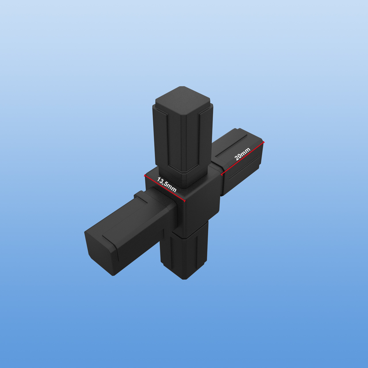 Steckverbinder für 13,5 x 13,5 x 1,25 mm Vierkantrohr | Kreuzverbinder | Schwarz