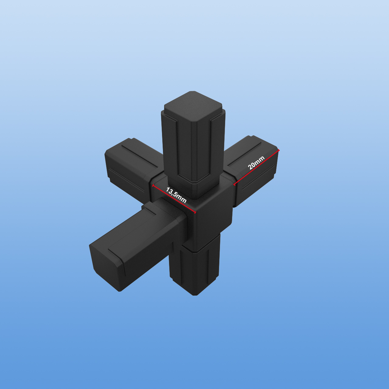 Steckverbinder für 13,5 x 13,5 x 1,25 mm Vierkantrohr | Kreuzverbinder mit einem Abgang | Schwarz