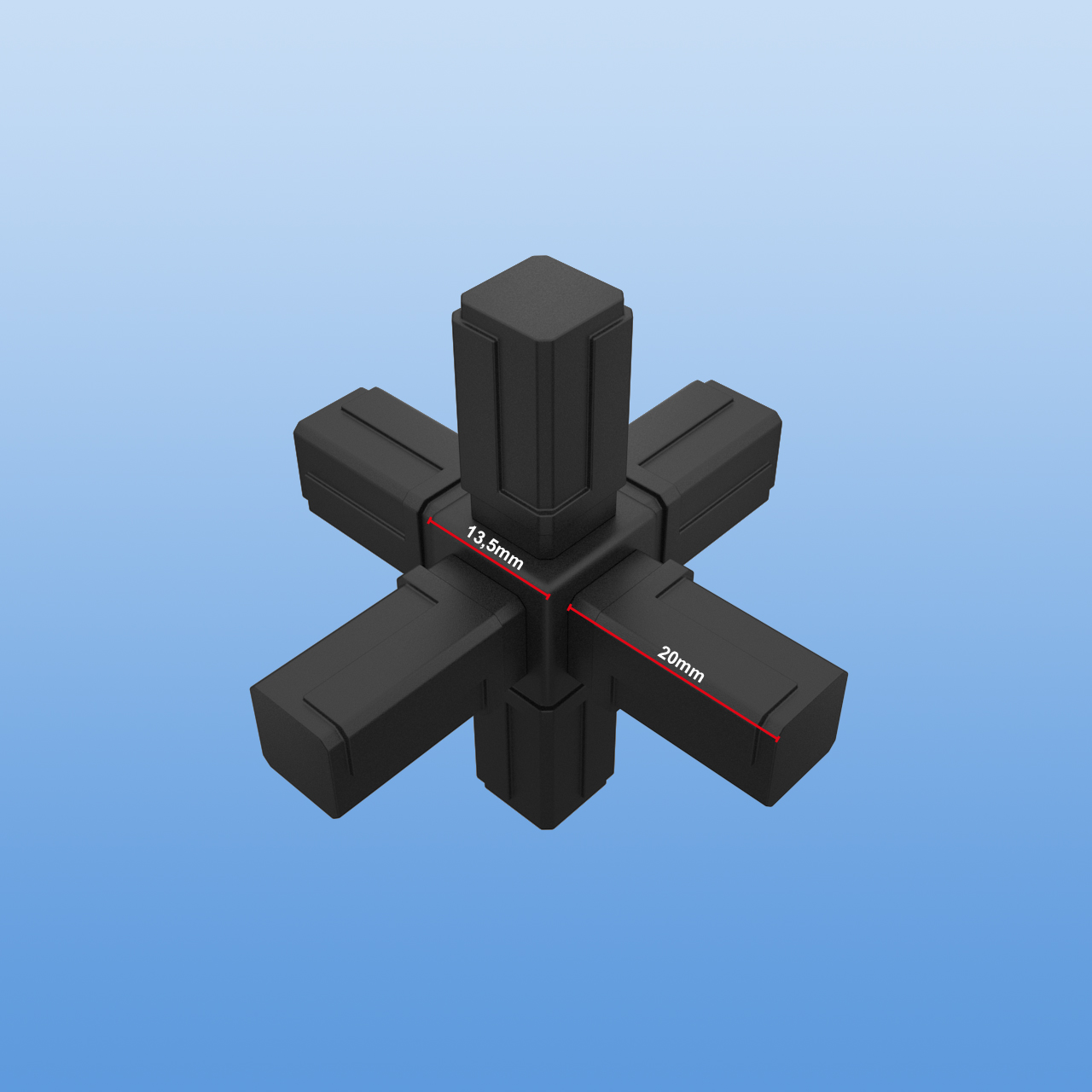 Produktinformationen "Steckverbinder für 13,5 x 13,5 x 1,25 mm Vierkantrohr | Kreuzverbinder mit zwei Abgängen | Schwarz"