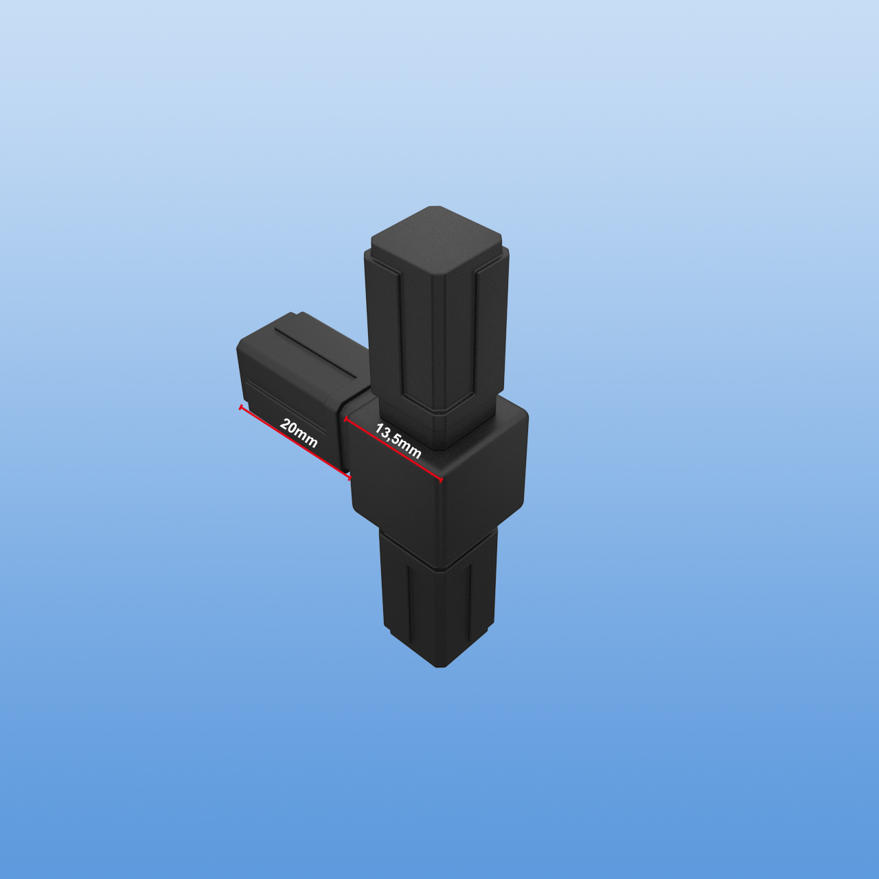 Produktinformationen "Steckverbinder für 13,5 x 13,5 x 1,25 mm Vierkantrohr | T-Stück | Schwarz"