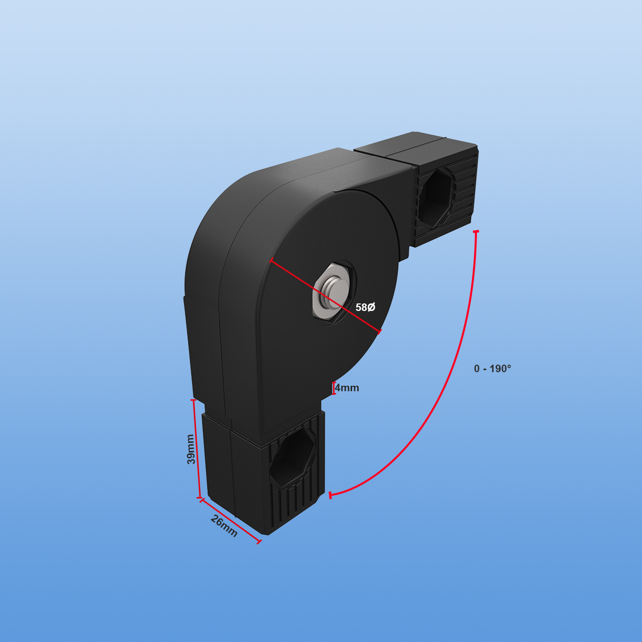 Steckverbinder für 30 x 30 x 2 mm Vierkantrohr | Gelenkverbinder 0 - 190 Grad | Schwarz