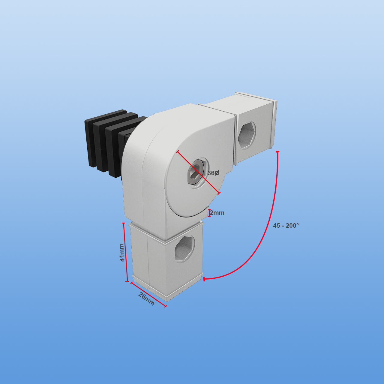 Steckverbinder für 30 x 30 x 2 mm Vierkantrohr | Gelenkverbinder 45 - 200 Grad mit einem Abgang | Grau RAL 7035