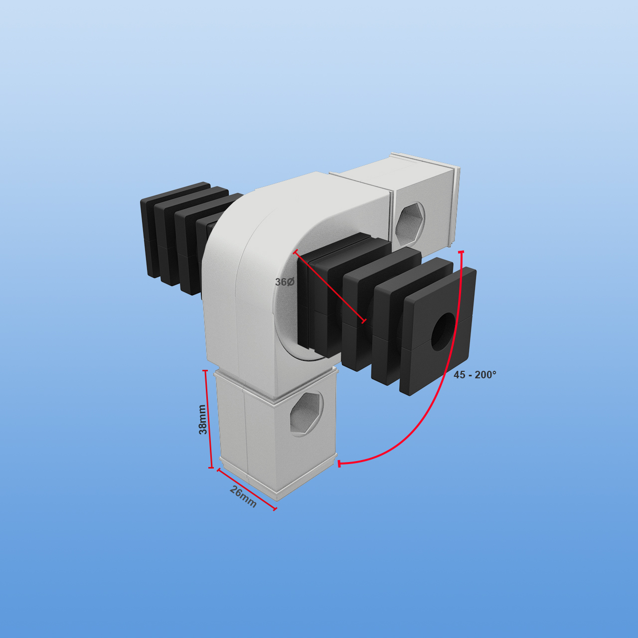 Grenzenlose Anpassung: Der graue Kunststoff-Gelenkverbinder mit stufenloser Einstellung und Seitlichem Abgang
