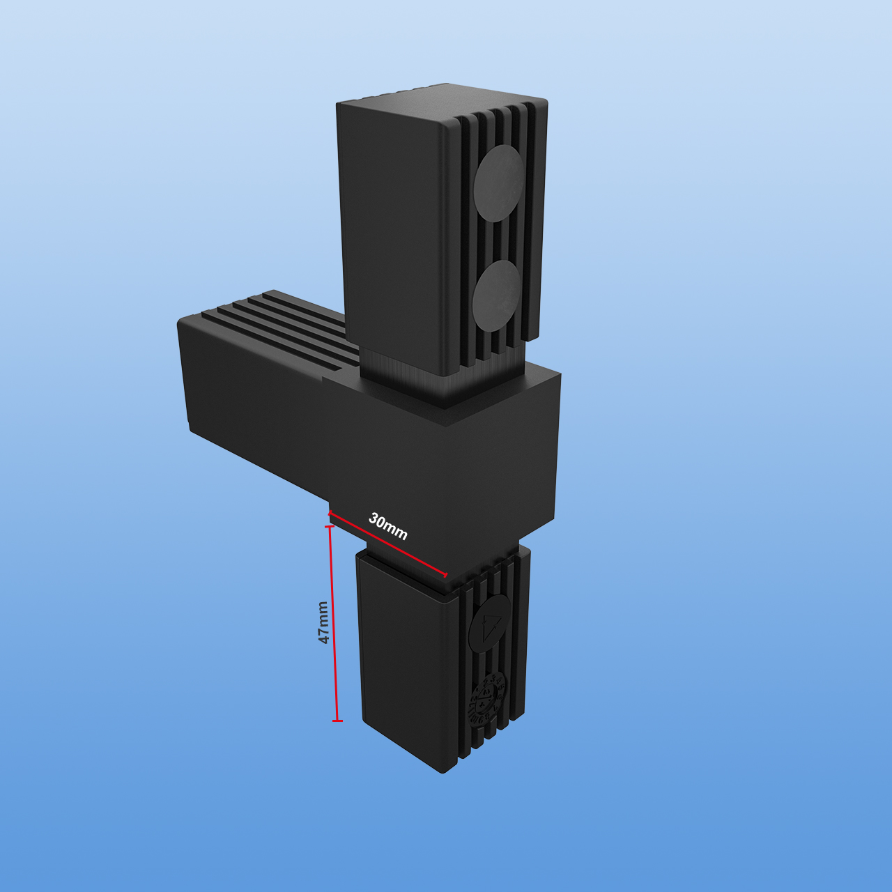 Produktinformationen "Steckverbinder für 30 x 30 x 2 mm Vierkantrohr | T-Stück | Schwarz mit Stahlkern"