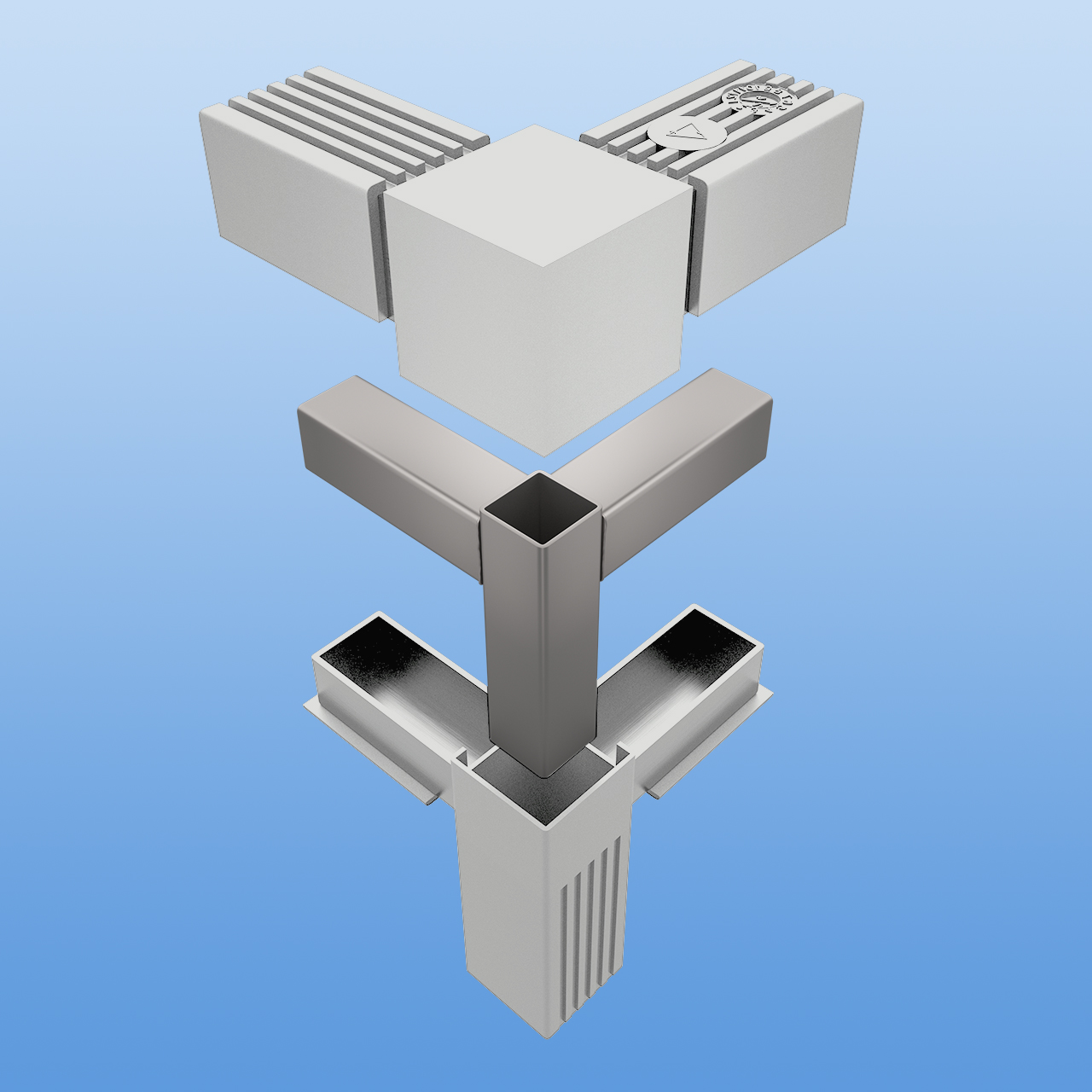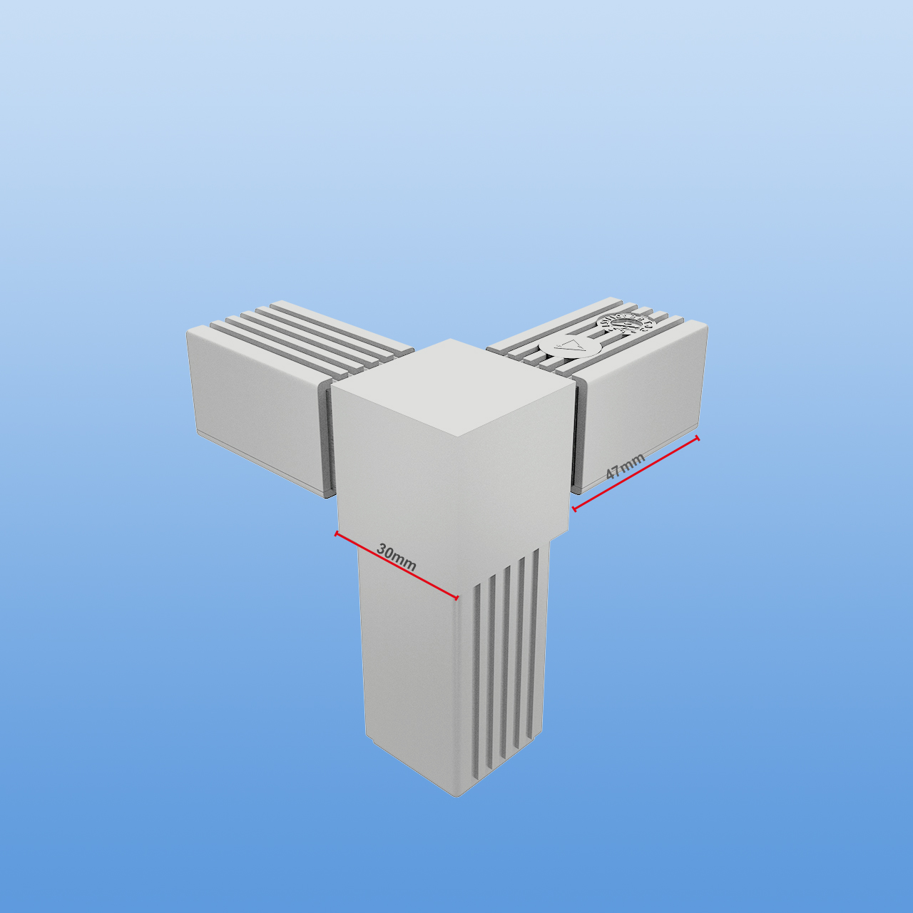 Produktinformationen "Steckverbinder für 30 x 30 x 2 mm Vierkantrohr | rechter Winkel mit einem Abgang | Grau mit Stahlkern"