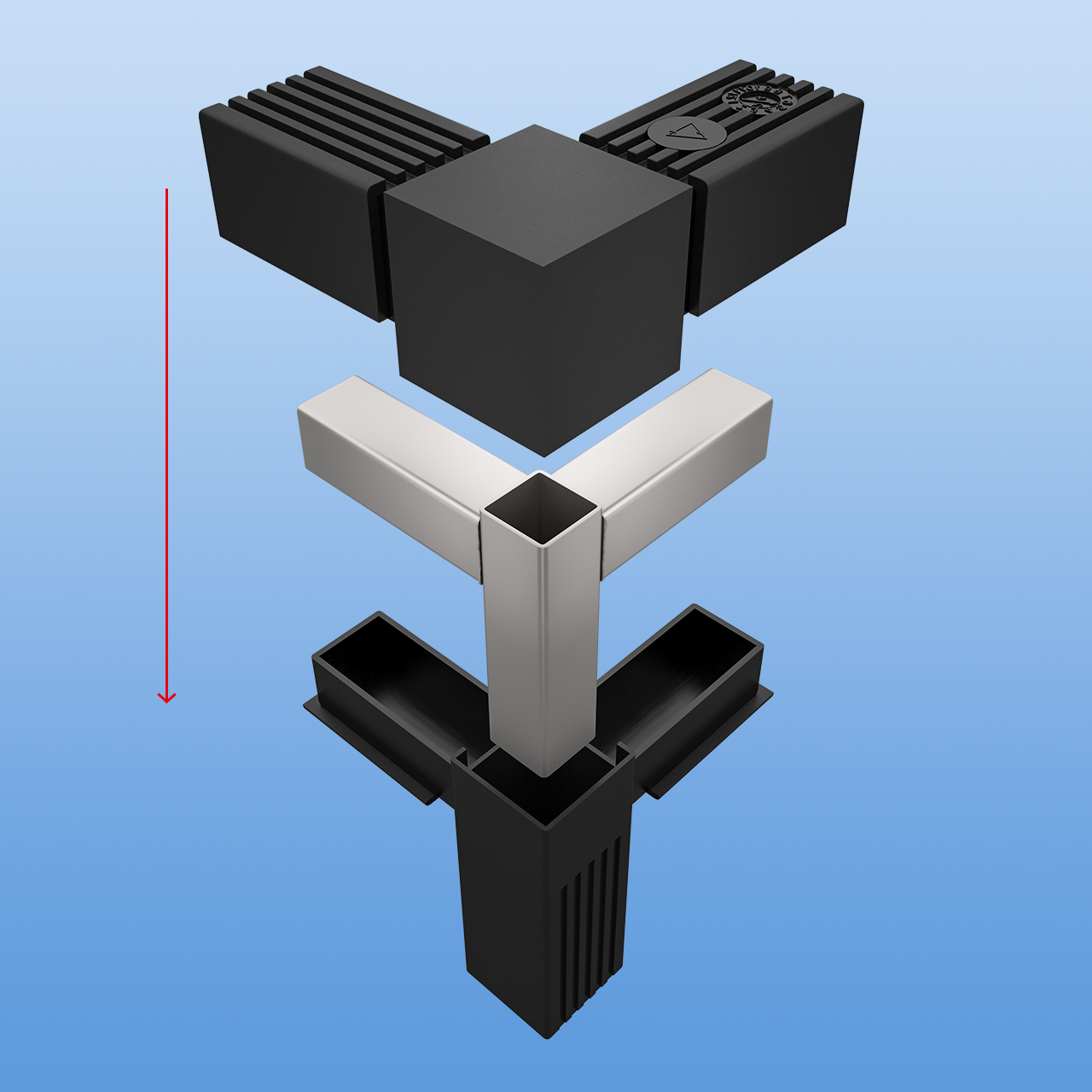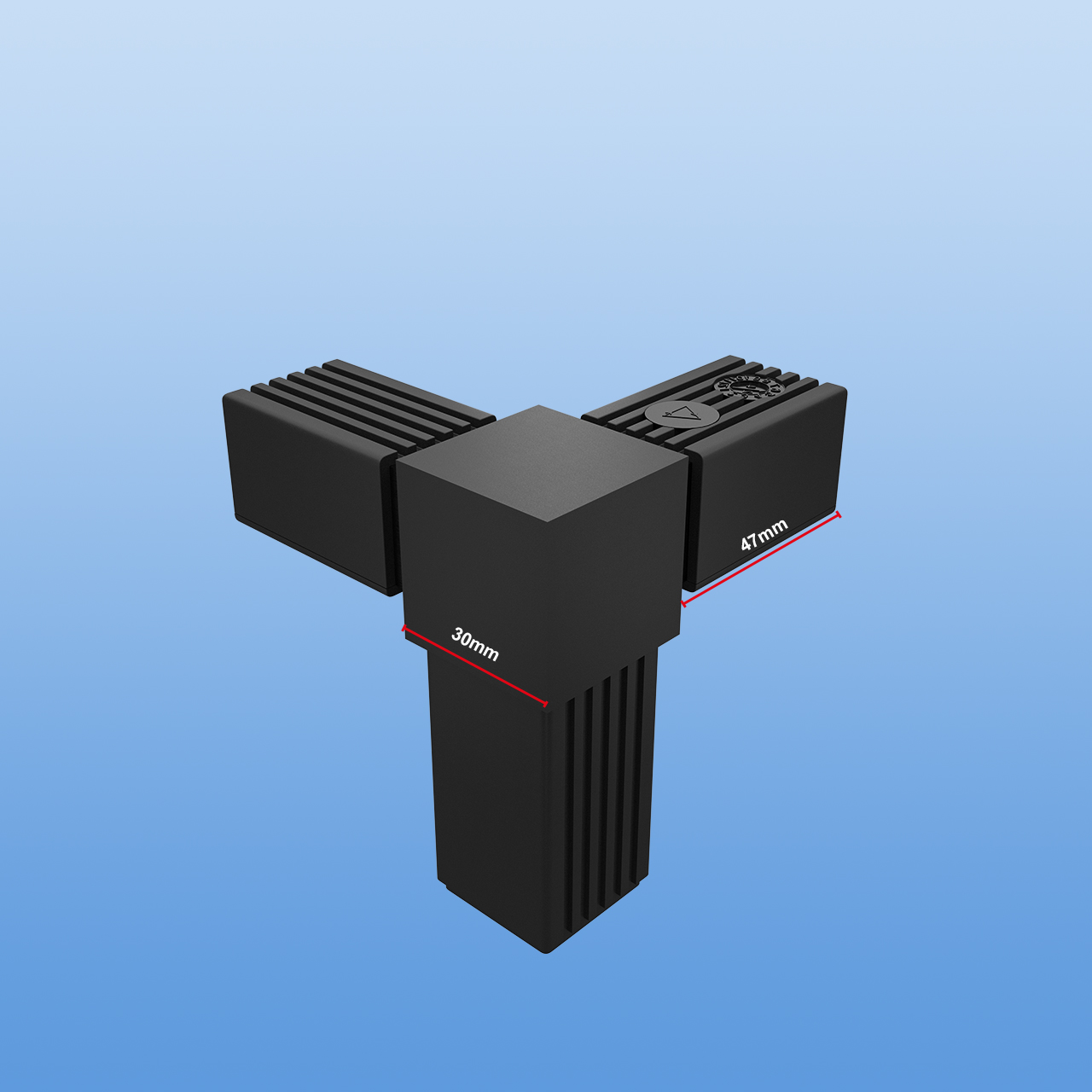 Produktinformationen "Steckverbinder für 30 x 30 x 2 mm Vierkantrohr | rechter Winkel mit einem Abgang | Schwarz mit Stahlkern"
