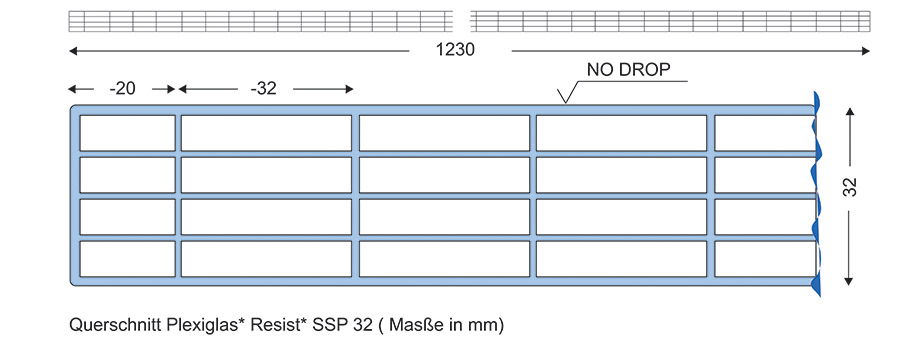 Eigenschaften von "Stegplatten PLEXIGLAS® Resist 32/32 farblos 00721 No Drop - Die Wohlige"