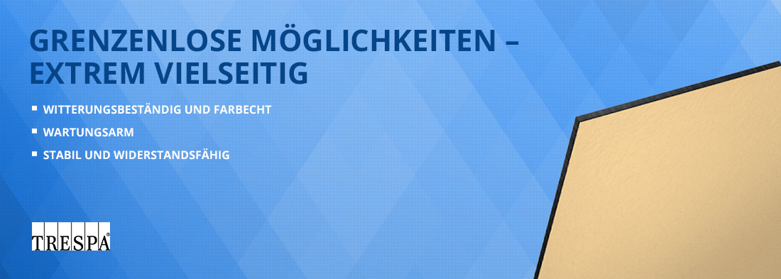 Trespa® Meteon® ist ausgezeichnet geeignet für Balkone und Balustraden. In diesen Platten vereinigt sich ästhetisches Design mit hoher Stoßfestigkeit. Trespa® Meteon® ist ein extrem vielseitiges Material. Die Platten können leicht mit Trespa anderen Baumaterialien kombiniert werden und sind in einer großen Farbpalette erhältlich, sei es um eine weitere Farbdimension hinzuzufügen, die bestehende Farbausführung zu verstärken oder um einen Kontrast herzustellen. Um möglichst viele Geschmäcker anzusprechen, bietet Trespa® Meteon® Platten an, die pro Seite jeweils eine verschiedene Farbe besitzen, sodass eine , von außen nicht einsehbare, Privatatmosphäre entstehen kann. Obwohl Trespa® Meteon® für sich kein Strukturmaterial ist, sind dennoch viele balkonspezifische Befestigungsoptionen mit diesem kompatibel.