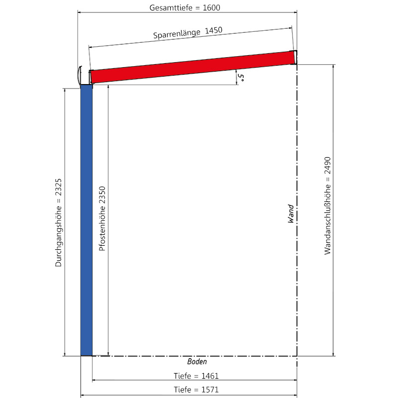 Die Maßangaben beziehen sich nicht auf die absoluten Außenmaße der Überdachung. Bitte schauen Sie sich hierzu die Detailzeichnung bei den weiteren Produktbildern sowie den Reiter "Lieferumfang" an.