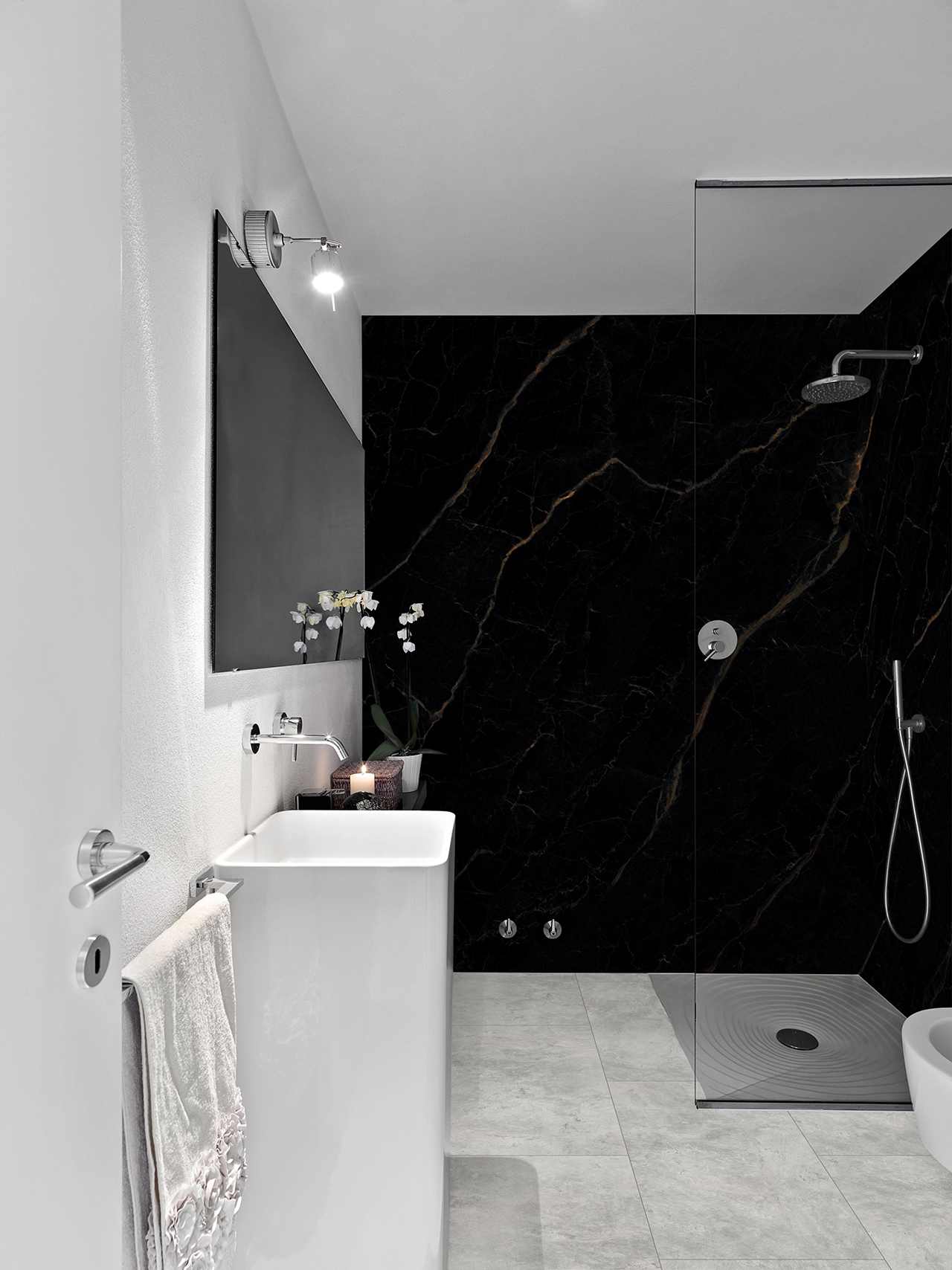 Ob glänzend oder matt, CHECK Smart Wall Tile ist in verschiedenen Oberflächen erhältlich und passt sich Ihrem persönlichen Stil an. Das harmonische Aneinanderreihen der Fliesen ermöglicht ein endloses, modernes Design, das jedem Raum ein edles Finish verleiht.