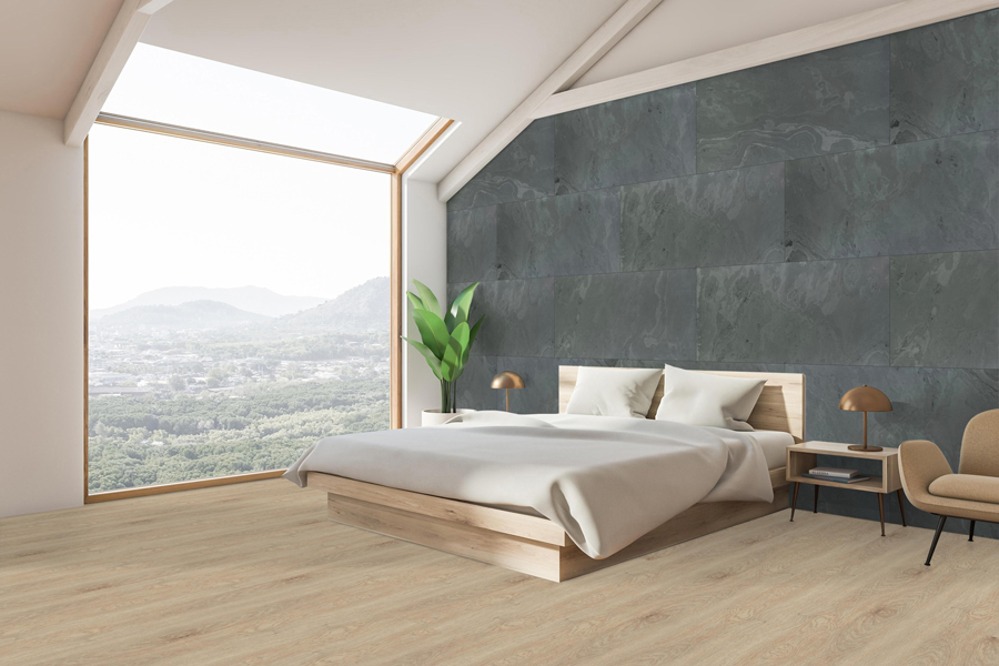 Trotz ihrer edlen Steinoptik besticht die CHECK real stone Wandverkleidung durch ihr geringes Gewicht. Die hauchdünne Natursteinschicht ist auf einem stabilen Glasfaser-Harz-Vlies fixiert und lässt sich dadurch besonders leicht verarbeiten. Mit einem großzügigen Format von 1220 x 610 mm eignet sie sich ideal für moderne, fugenarme Wandgestaltungen.