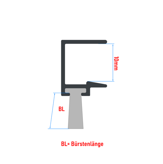 Mit dem 10mm Bürstenprofil, bzw. Zugluftstopper für Glasschiebewände können Sie die Zwischenräume zweier 10mm ESG Scheiben schließen, so dass das Eindringen von Zugluft auf ein Minimum reduziert werden kann. Das farblich, auf unsere Glasschiebewände, abgestimmte Profil wird einfach auf die Glasscheibe aufgesteckt. Um einen sicheren Halt der Zugluftstopper auf dem Glas zu gewärleisten, kann in das Profil eine dünne Schicht von unserem Montagekleber gegeben werden.