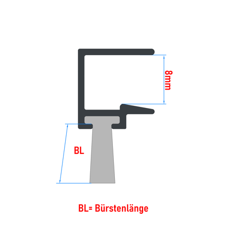 Eigenschaften von "Zugluftstopper mit Bürstendichtung für 8mm ESG Scheiben - Anthrazit DB703"